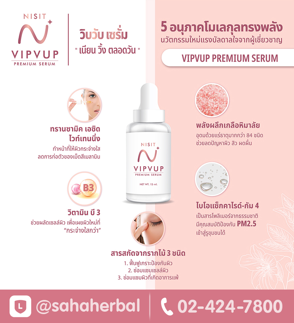 นิสิตเซรั่ม Nisit Serum 1 ขวด เพียง 290.- โทรเลย 02-424-7800 ฟื้นฟูผิวของคุณตั้งแต่นาทีแรก